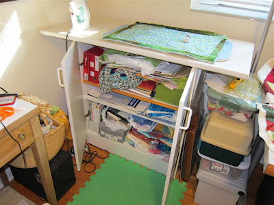 Two or three years ago, I counted how many UFOs (Unfinished Objects) I had in my quilting room. I found 27. About 6 months ago, when I counted again, I still had about 27. The number doesn't seem to change, despite the fact that these are not the exact same 27 projects. This past weekend, I made the mistake of opening the ironing board cabinet. This is the place where bits and pieces that aren't even real projects go to hide. These are mostly orphan blocks leftover from quilts I finished years ago. They don't even count as UFOs, because their project was finished.